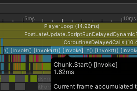 The one major issue I faced during development was the time needed to regenerate the world around the player. At render sizes of greater than 20 by 20 pixels from the map the FPS halves and creates stutter. I was partially able to address this by spreading out the instantiation of objects over a larger amount of frames. This approach created a new issue, however, as the world seemingly reappeared in front of the player, which broke the illusion of a contiguous world space. I ultimately ended up compromising by accepting some level of stutter when the world has to be regenerated.